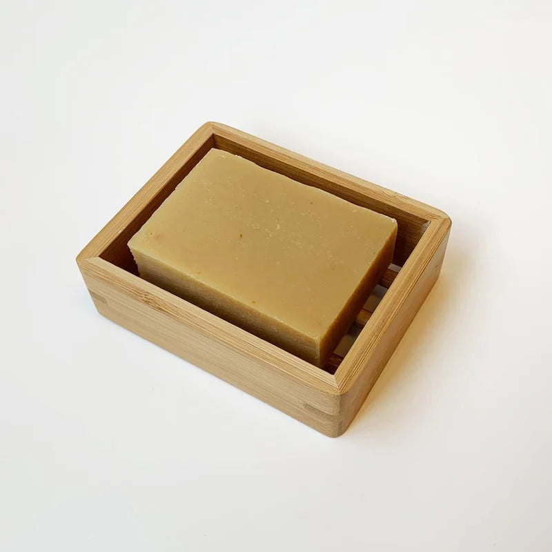 Our zero waste 100% natural bamboo soap dish conveniently holds all your essential eco friendly bar products and sponges.